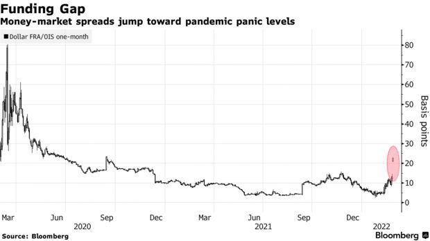 随着美联储缩减购债并为加息做好准备,美国国债市场还面临着交易条件失调的问题。周一由迹象表明,西方国家对选定的俄罗斯银行禁用SWIFT系统以及对俄央行的外汇储备实施制裁增加了融资市场的压力。
