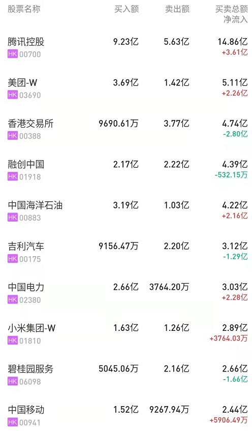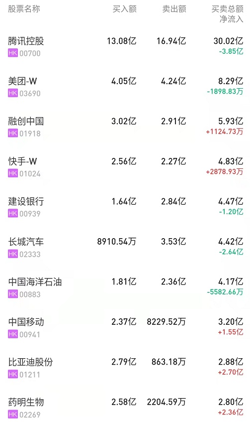 此外,中海油(00883)、小米集团-W(01810)分别获净买入1.6亿、3764万港元。长城汽车(02333)、建设银行(00939)、腾讯(00700)分别遭净卖出2.64亿、1.19亿、2467万港元。