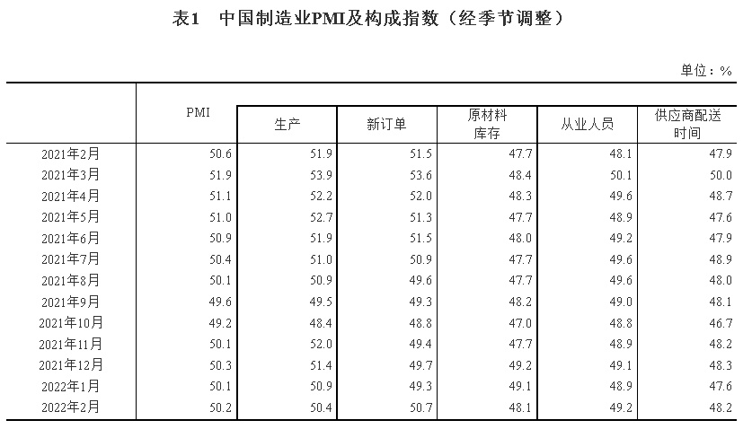 智通财经APP获悉,据国家统计局3月1日消息,2月份,中国制造业采购经理指数(PMI)为50.2%,比上月上升0.1个百分点,继续高于临界点,制造业景气水平略有上升。