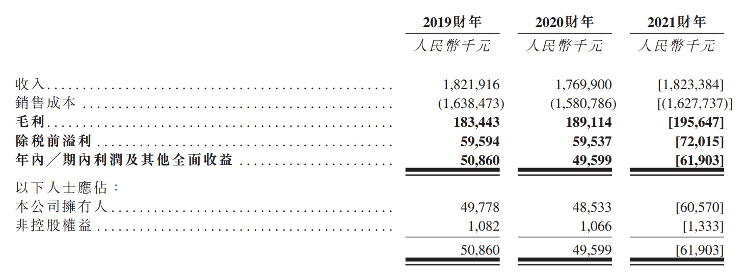 2019、2020及2021财年,中天建设的收入为18.22亿、17.70亿及18.23亿元人民币;毛利分别为1.83亿、1.89亿及1.96亿元人民币;净利润分别为5086万、4959.9万、6190.3万人民币。公司收入增加主要由于建筑合同产生的收入增加。毛利率持续上涨的原因主要是通过谨慎选择投标及对本集团主要成本(如劳工成本及劳务分包成本,约占往绩记录期间总销售成本的20%至40%)的严格控制,方式为通过将集团的劳动力成本转移至分包商进行若干劳动密集型建筑工程,从而达到成本效益与灵活度的最大化,使公司能够承接毛利率较高的建设项目。