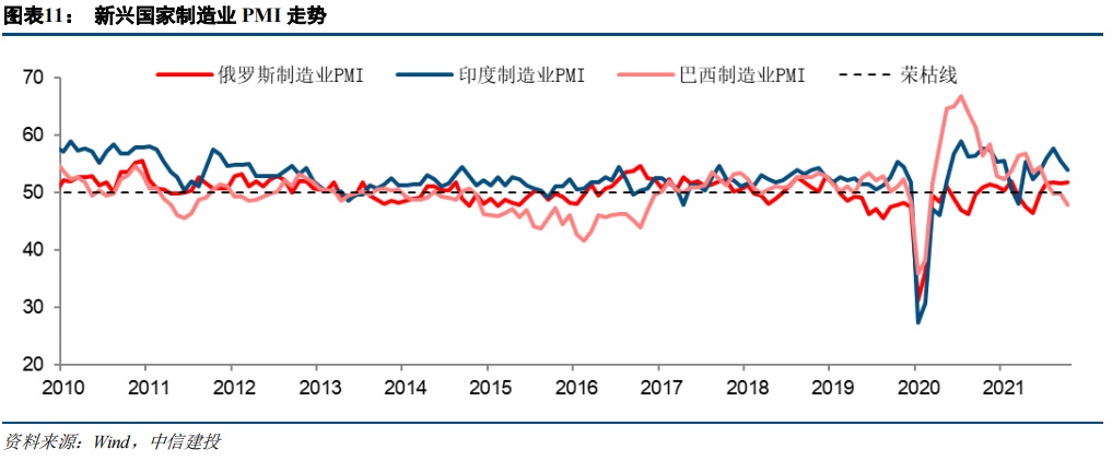2022年1月俄罗斯Markit制造业采购经理人指数PMI为51.8,较上月上升0.2。1月巴西IHSMarkit制造业PMI为47.8,较上月下降2.0。1月印度制造业PMI终值为54,较上月下降1.5,制造业活动扩张减缓。