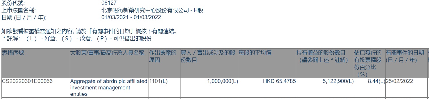 智通财经APP获悉,香港联交所最新资料显示,2月25日,Aggregate of abrdn plc affiliated investment management entities增持昭衍新药(06127)100万股,每股作价65.4785港元,总金额为6547.85万港元。增持后最新持股数目为512.29万股,最新持股比例为8.44%。