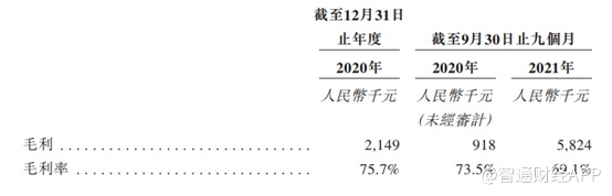 毛利率方面,公司的的毛利率从截至2020年9月30日止九个月的73.5%,降低至2021年同期的69.1%,主要因为公司的产能扩张,导致生产人员数量增加。