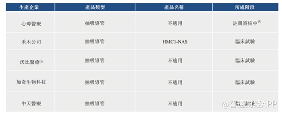 截至最后实际可行日期,国家药监局已批准5家厂商的4种抽吸导管的注册证书。