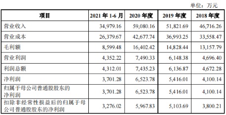业绩表现方面,2018年-2021年上半年,唯特偶实现收入4.67亿元、5.18亿元、5.91亿元、3.5亿元,净利润4100.14万元、5416.01万元、6523.78万元、3701.28万元。
