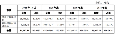 报告期各期,唯特偶主营业务收入占营收的比重均超过98%。进一步细分,公司的主营业务又分为微电子焊接材料和辅助焊接材料及其他,其中前者包括锡膏、焊锡条和焊锡丝等产品,为公司的主要收入来源,期内占比分别达83.79%、84.04%、82.82%、83.63%;辅助焊接材料及其他则主要由助焊剂、清洗剂等产品构成,属于微电子焊接材料中焊锡条、焊锡丝产品的配套产品。