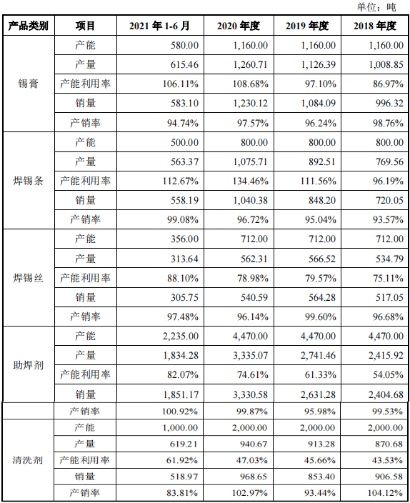 据招股书披露,期内唯特偶的锡膏产品产能利用率分别为86.97%、97.1%、108.68%、106.11%;同期,焊锡条的产能利用率更是高达96.19%、111.56%、134.46%、112.67%。产能之紧张,可见一斑。