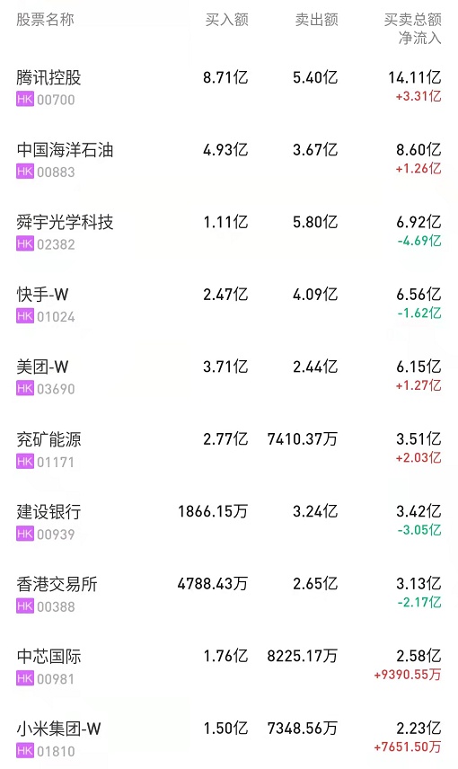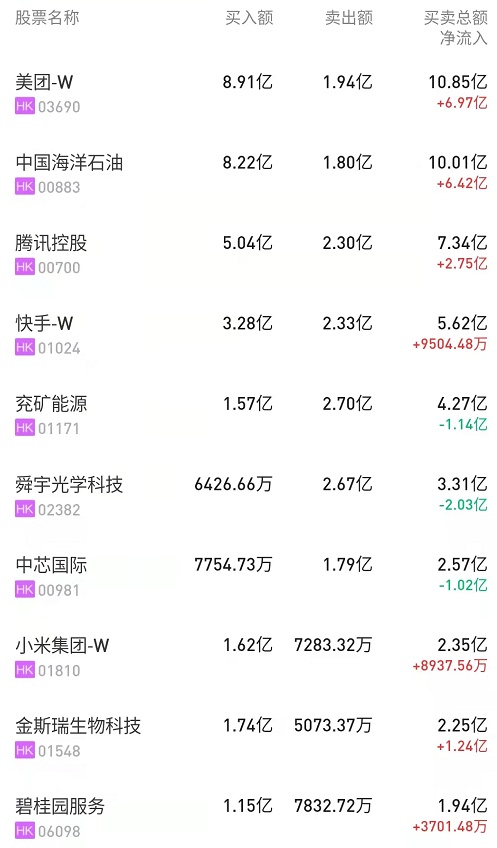 腾讯(00700)获净买入6.06亿港元。消息面上,国信证券发布研报称,互联网行业的监管方向未变,但边际有所改善。我们对全年互联网行业表现观点不变,政策边际放松+业绩改善,板块有望实现反弹。3月互联网行业即将密集发布2021年年报,我们建议优先布局年报业绩优秀的互联网龙头公司快手、网易。同时,腾讯估值已处于历史低位-,为隐含众多优质向上期权的核心资产,建议逢低布局。