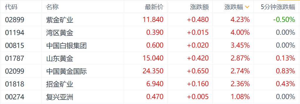 受此利好影响,今日港股市场的黄金及贵金属板块也强势上扬:截至3月2日收盘,板块涨幅达到4.35%,在大盘整体走势较弱的表现下可谓是市场上最靓的“崽”;个股方面,紫金矿业(02899)、湾区黄金(01194)股价皆涨超4%,山东黄金、中国黄金国际等黄金股则纷纷跟涨。