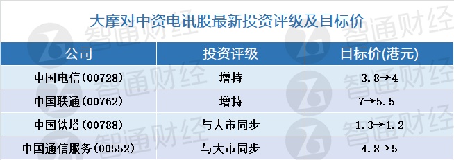智通财经APP获悉,大摩发布研究报告称,调整多只中资电讯股评级及目标价,对行业资本开支及派息前景看法正面。