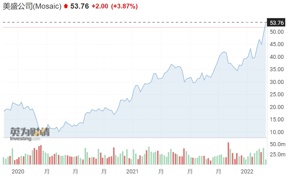美国美盛股价表现更加出色,从2020年3月中旬迄今,该公司从疫情伊始的低点到目前的价格上涨了近4.6倍,今年迄今上涨了40%。