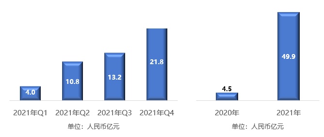 公司预计,2022年一季度收入为15-16亿元人民币,预计同比增长275%-300%。