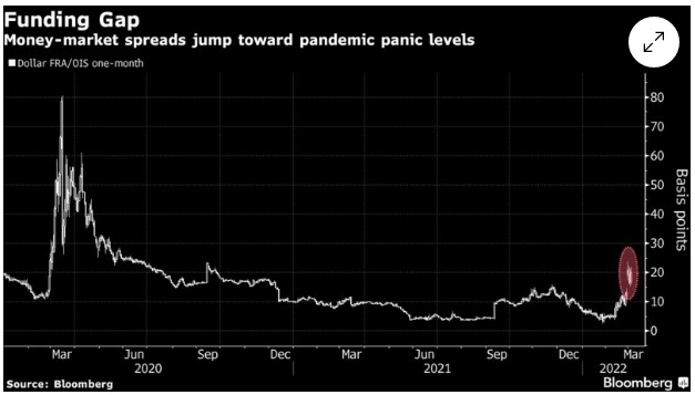 货币市场的息差跃升至大范围恐慌的水平