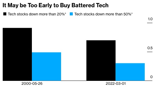 Richard Bernstein Advisors的Dan Suzuki表示,在2000年3月份科技股达到峰值后的两个月内,超过90%的科技股跌幅超过20%。