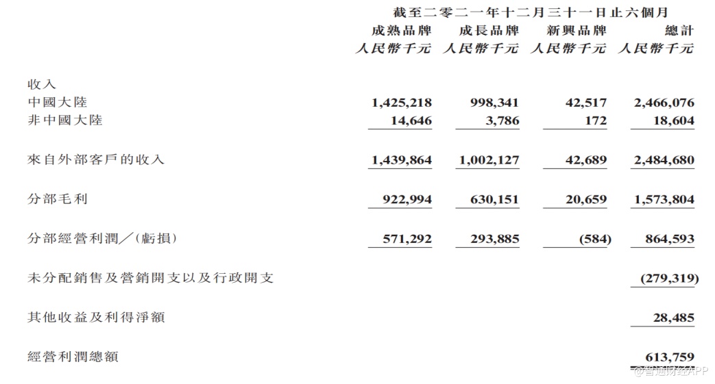 此外,新兴品牌虽在2022上半财年取得4268.9万元收入,综合毛利率大幅提升15.6个百分点至48.4%,但新兴品牌仍然亏损584万元。