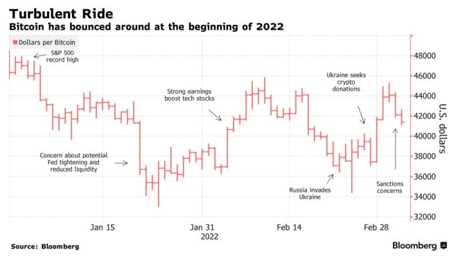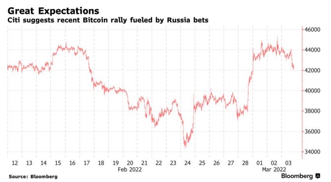 智通财经APP获悉,在市场预期制裁或推动俄罗斯资金流向加密货币的影响下,比特币本周早些时候一度站上45000美元,然而,在这一预期似乎被证伪,同时有报道传出乌克兰核电站被攻击后,比特币重新回落至41000美元附近。