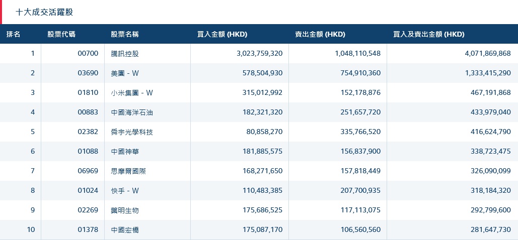 此外,小鹏汽车-W(09868)、中国神华(01088)分别获净买入2.44亿、2504万港元。