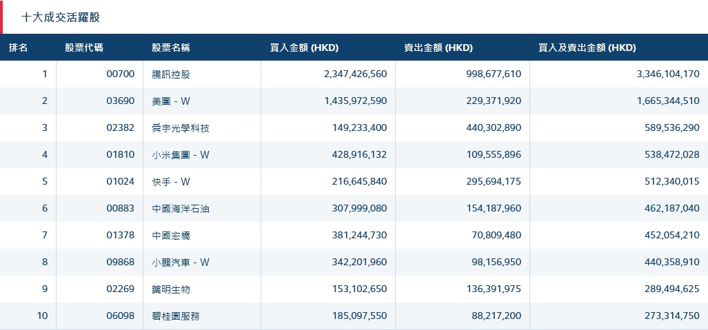 北水净买入最多的个股是腾讯(00700)、美团-W(03690)、小米集团-W(01810)。北水净卖出最多的个股是舜宇光学(02382)。