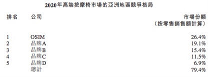 根据灼识咨询,亚洲高端按摩椅市场(包括提供价格高于3000美元按摩椅的品牌)于2016年至2020年按复合年增长率10.7%增长,相比亚洲中低端按摩椅市场(包括提供价格低于3000美元按摩椅的品牌)于2016年至2020年则按复合年增长率9.0%增长。预期到2026年,亚洲高端按摩椅市场的销售总额按复合年增长率14.5%将会增加至27亿美元,百分比远高于亚洲中低端按摩椅分部的销售总额。