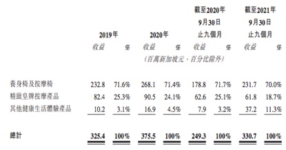 而来自包括臀腿和足部按摩器、肩颈和背部按摩器及便携式按摩器的精致皇牌按摩产品的收益占比于报告期内有所下滑,分别为25.3%、24.1%及18.7%。