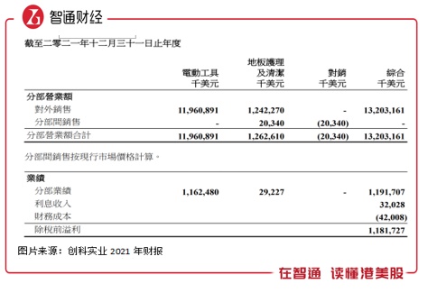 创科实业主要有两大业务,电动工具和地板护理业务,市场主要分布在欧美国家,核心市场在北美洲。电动工具业务包括MILWAUKEE设备系统、电动工具产品、户外园艺工具、储存产品及RYOBI产品等,而地板护理业务主要为充电式及地毯清洗产品。2021年该公司两大业务各项产品均取得不错的增长水平。