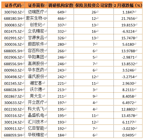(1)迈瑞医疗(300760.SZ):2月机构调研总数TOP1 布局机会显现?