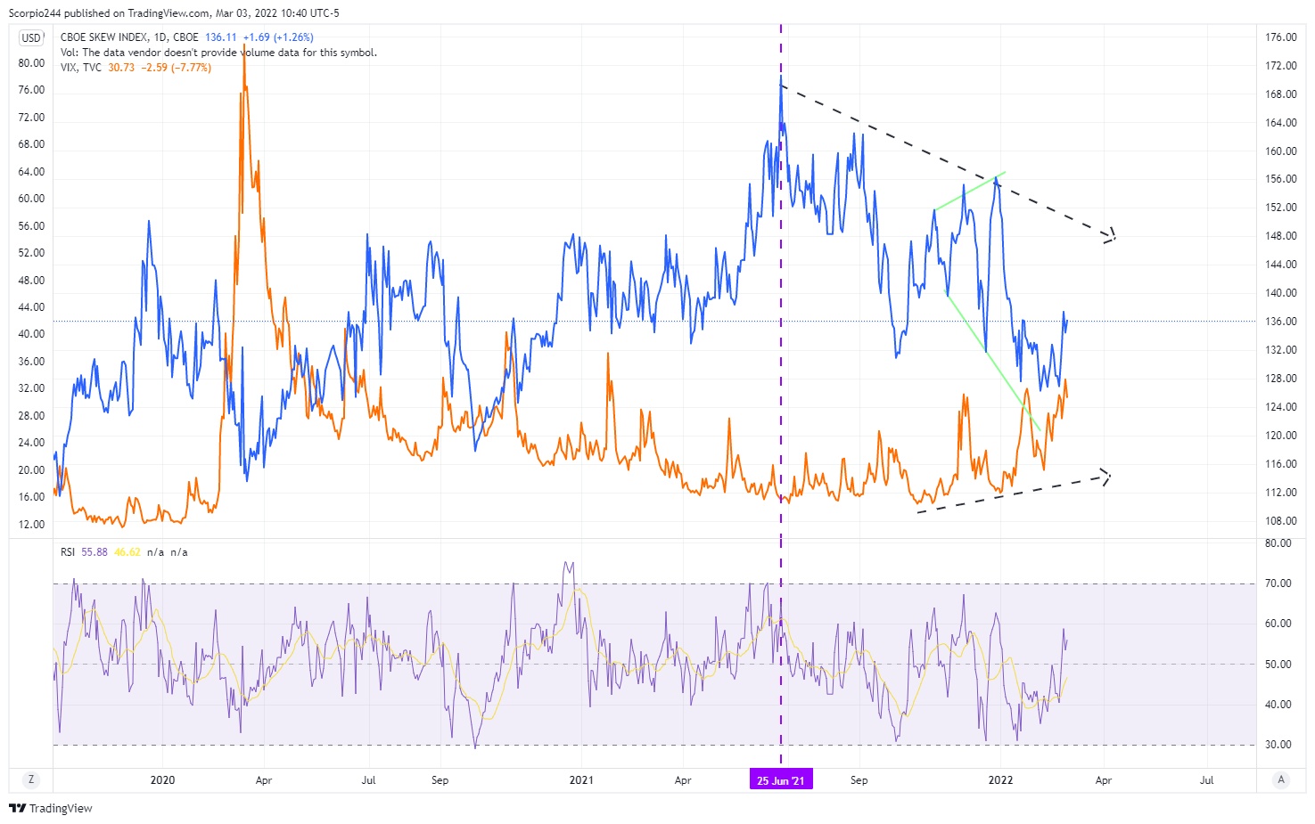 Michael Kramer指出,期权的看涨趋势与过去几个月投资者在波动率指数中看到的趋势一致,VIX指数一直处于上升趋势,明显看得出来逆转了2021年9月之前的下跌趋势。