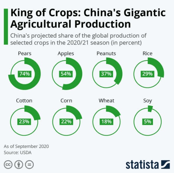 需要考虑的一个重要事实是,拥有14亿人口的中国和印度都是主要的粮食生产国,但这两个国家生产的粮食大部分是国内消费的。