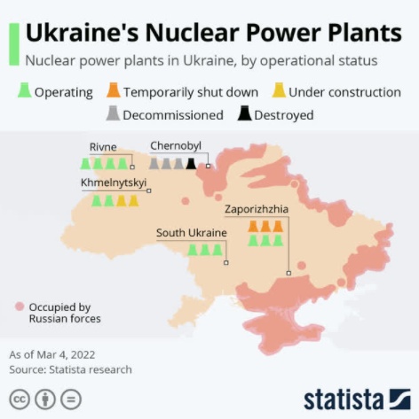 下图由在线信息公司 Statista Research 提供的乌克兰核电站的图表显示了乌克兰核电站的名称和位置。