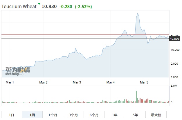 智通财经APP注意到,由于俄罗斯在港口城市的军事行动,进出黑海的商业航运已经停止,乌克兰90%的农产品都是通过这些港口运输的。此外,根据国际货币基金组织的数据,早在俄罗斯2月底和乌克兰开战之前,从2020年4月到2021年12月,小麦价格已经上涨了80%。这同时带动了Teucrium小麦ETF (WEAT.US)的价格上涨。