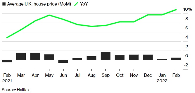 不过,英国最大抵押贷款机构Halifax表示,随着4月份税收和能源账单的大幅增加、以及利率上升的影响和俄乌冲突对市场信心的打击,未来几个月的房价增长可能会放缓。