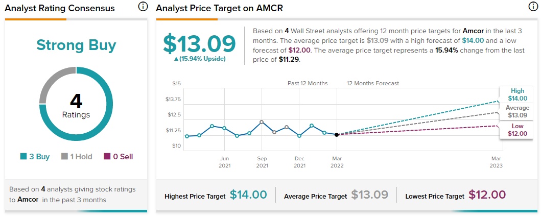 Wilde给予Amcor“跑赢大盘”评级,目标价14美元。分析师对Amcor共识评级为“强烈买入”;不过,“买入”评级与“持有”评级的比例为3:1,平均目标价13.09美元。
