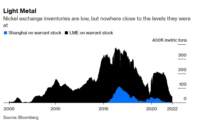 镍的交易所库存虽然很低,但还远未达历史最低水平