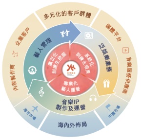 凭藉在艺人管理行业的市场领先地位,公司也积极拓展泛娱乐市场,包括虚拟艺人商业发展、综艺节目形式授权及艺人相关衍生品销售。2020年11月,公司与一名业务伙伴合作推广由五名数字化打造的成员组成的流行虚拟艺人组合A-SOUL。A-SOUL于首次推出后获得市场的良好反响,并于多个媒体平台拥有并经营自己的频道。