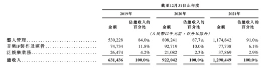 由于旗下诸多签约艺人接受演唱培训,公司也持续拓展音乐IP制作及运营业务,公司已建立一个庞大的音乐IP库,音乐IP库中的音乐作品风格多样,涵盖流行、民谣、电子舞曲、嘻哈和摇滚多种风格。截至2021年12月31日,音乐IP库包括约1,100首为签约艺人制作和发行的原创音乐录音录像制品以及超过50,000首由公司获得第三方版权持有人授权的音乐作品。公司为签约艺人制作和发行的数字单曲和专辑深受欢迎。其中,公司为王一博先生制作的两首数字单曲《无感》和《我的世界守则》截至2021年12月31 日,销量分别超过17百万张及15百万张。截至同日,公司为朱正廷先生制作的数字专辑《Chapter Z》销量约二百万张。公司为签约艺人制作的音乐作品于中国顶尖的音乐流媒体平台(如网易云音乐和腾讯音乐)及国际音乐平台上发行,使听众可在线收听或下载。