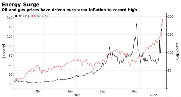 欧洲央行首席经济学家莱恩(Philip Lane)最近就暗示了这一点,目前这些指标作为一种政策提示可能过于不可靠;再加上俄乌冲突对欧元区经济增长构成的威胁,尽管欧盟总体通胀率几乎是官方目标的三倍,上述观点可能会降低欧洲央行2022年加息的可能性。
