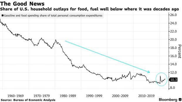 食品和汽油加起来占平均消费篮子的近五分之一,这一比例在低收入家庭中还会上升。除了食品和汽油价格的上涨,美国人同时还要应付房租和水电费的上涨。