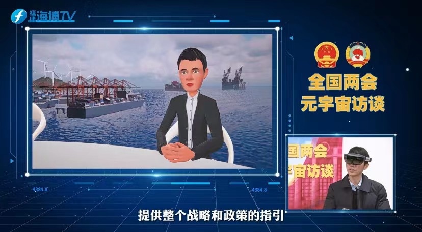 图为:全国人大代表参加两会元宇宙访谈