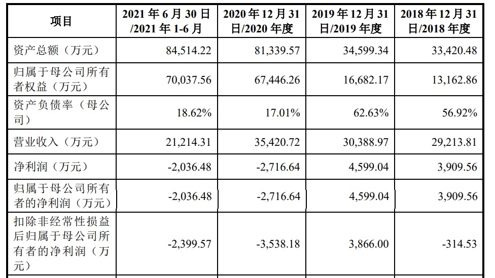 据招股书显示,2018年只2020年,该公司实现营收分别为2.92亿元、3亿元、3.54亿元,2019年和2020年分别同比增长为2.74%、18%。而实现净利润分别为3909.56万元、4599万元、-2716.64万元,扣非后净利分别为-314.5万元、3866万元、-3538万元,整体来看你,净利润水平表现较为波动。