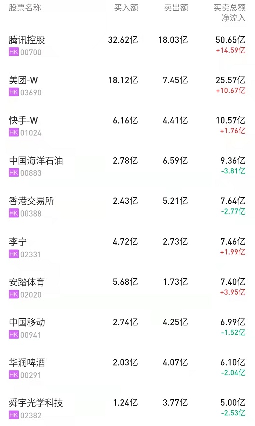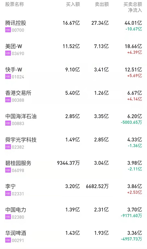 此外,中海油(00883)、中国移动(00941)、中国电力(02380)分别遭净卖出4.31亿、1.51亿、9171万港元。