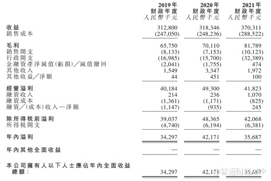 净利润方面,近三年公司录得净利润分别达到3429.7万元、4217.1万元及3568.7万元。2021年由于上市相关费用开支,公司行政开支大幅提高1270万元,导致2021年业绩大幅下降,扣除该项影响,2021年净利润约4648.2万元,三年复合增长率约16.4%。