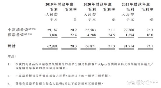 庞大的吸烟人群,推动中国卷烟的销量由2016年的约23075亿支稳定增长至2021年的23755亿支,复合年增长率约为0.6%。不过,2019年,由于健康中国行动的意见的刊发,推进公民健康生活,令卷烟销量增长放缓。