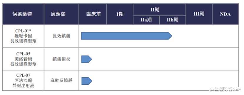 一直以来,加立生物都深耕于术后疼痛管理领域。因此其产品管线侧重于非阿片类术后疼痛管理、炎症控制、麻醉及镇静。除了核心产品CPL-01外,公司管线还包括CPL-05和CPL-07两款处于临床前研究阶段的重磅产品。