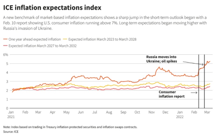 智通财经APP获悉,俄乌冲突之际,美联储将于周四凌晨公布3月利率决议,美联储官员对未来利率和经济形势的最新预测将在3月会议上公布,届时将提供关于他们对未来数月政策紧缩幅度及速度预测的前瞻指引。
