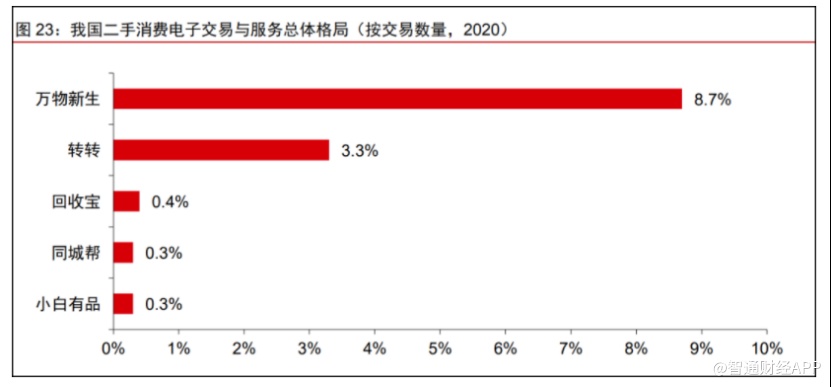 除此之外,近年来,闲鱼、转转等已在二手手机线上用户交易、B2C和二手回收领域占据流量市场主导地位。万物新生面临的竞争压力可见一斑。