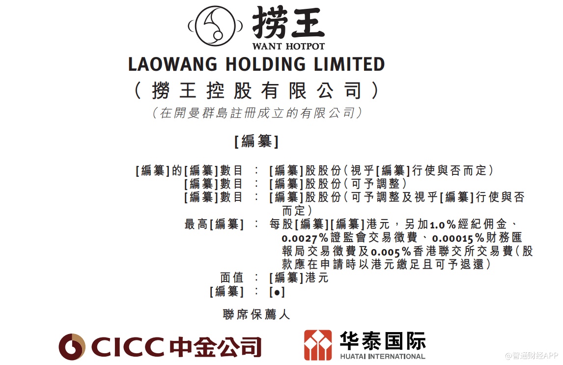 智通财经APP获悉,据港交所3月14日披露,捞王控股有限公司向港交所主板提交上市申请,中金公司及华泰国际为联席保荐人。值得注意的是,该公司曾于去年9月1日向港交所主板递表,目前该申请已经失效。