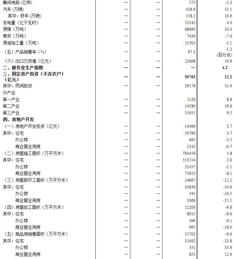 (2)规模以上工业增加值及其分类项目增长速度按可比价计算,为实际增长速度;其他指标除特殊说明外,均按现价计算,为名义增长速度。