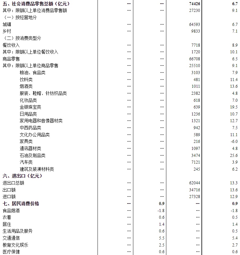 (6)进出口数据来源于海关总署;城镇新增就业人员数据来源于人力资源和社会保障部。