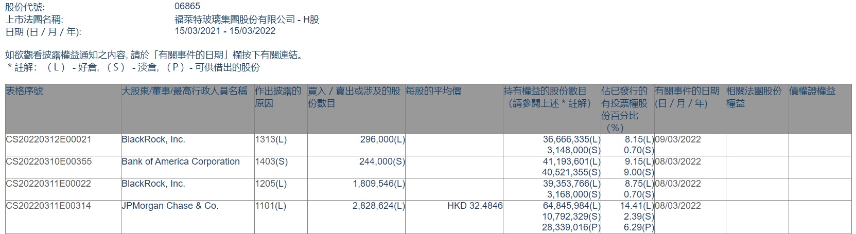 智通财经APP获悉,香港联交所最新资料显示,3月8日,小摩增持福莱特玻璃(06865)282.8624万股,每股作价32.4846港元,总金额约为9188.67万港元。增持后最新持股数目约为6484.60万股,最新持股比例为14.41%。