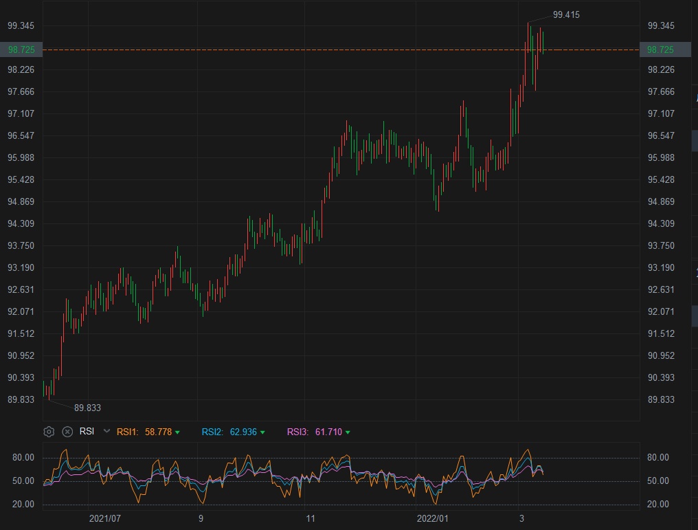 美国经济增长改善和通胀加速攀升在一定程度上也推动了美元的强势表现,同时这些因素也使得交易员们普遍押注美联储将开启新一轮加息周期。据统计,Bloomberg咨询和访问的88位经济学家均表示,美联储将在美东时间周三进行的为期两天利率会议之后公布最新措施开启紧缩周期。但是,他们中绝大多数人认为,目前外汇市场已经在消化今年的加息预期,因此即使加息周期开启美元也难以继续走强。